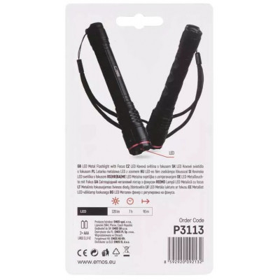 Компактний ліхтар з фокусом P3113 з якісної лінійки алюмінієвих ручних ліхтарів чеського виробника EMOS. У даній моделі використовується лінза для забезпечення рівномірного розподілу світлового потоку при зміні точки фокуса. Як результат - промінь фокусується рівномірно і без темних плям. Прорезиненная клавіша включення оберігає ліхтар від попадання вологи.