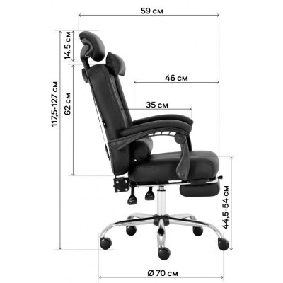 Спинку можна нахилити під кутом в діапазоні від 90° до 140°. Для цього потрібно скористатися важелями, які знаходяться збоку під сидінням. Для підтримки шиї і попереку передбачені м'які знімні подушки. Вони підвищать ваш комфорт і допоможуть зняти напругу з м'язів шийного і поперекового відділів. Під сидінням передбачена підставка для ніг. Ви можете висунути її, відкинути спинку і відпочити, зайнявши зручне для себе положення.